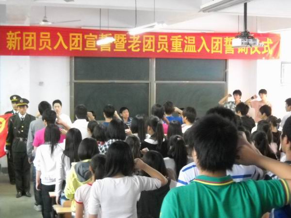 ??????? 今年是建黨90周年,在此之際,校團委于5月25日下午5:20在教學樓108舉行了新團員入團宣誓暨老團員重溫入團誓詞?儀式。王彬副校長參加了此次儀式。