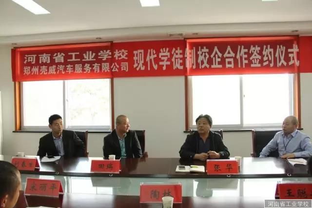 ?????? 4月18日下午,在三樓會議室舉行了河南省工業(yè)學校與殼威集團校企合作簽約儀式。張華校長、教務處主任陶林、機電系主任周自斌、書記王聰興、殼威集團(鄭州)總裁田瑞、技術總監(jiān)劉春生及我校相關人員參加了簽約儀式。儀式由周自斌主任主持。殼威集團成立于2009年,是一家集研發(fā)、生產(chǎn)、銷售、培訓、互聯(lián)網(wǎng)于一體的汽車服務型企業(yè),目前在全國有門店400多家,是國內(nèi)汽車快修快保行業(yè)的佼佼者和領軍者。經(jīng)過前期接觸、了解、協(xié)商,我校決定與該集團合作建設汽修專業(yè)“現(xiàn)代學徒制”培訓基地。