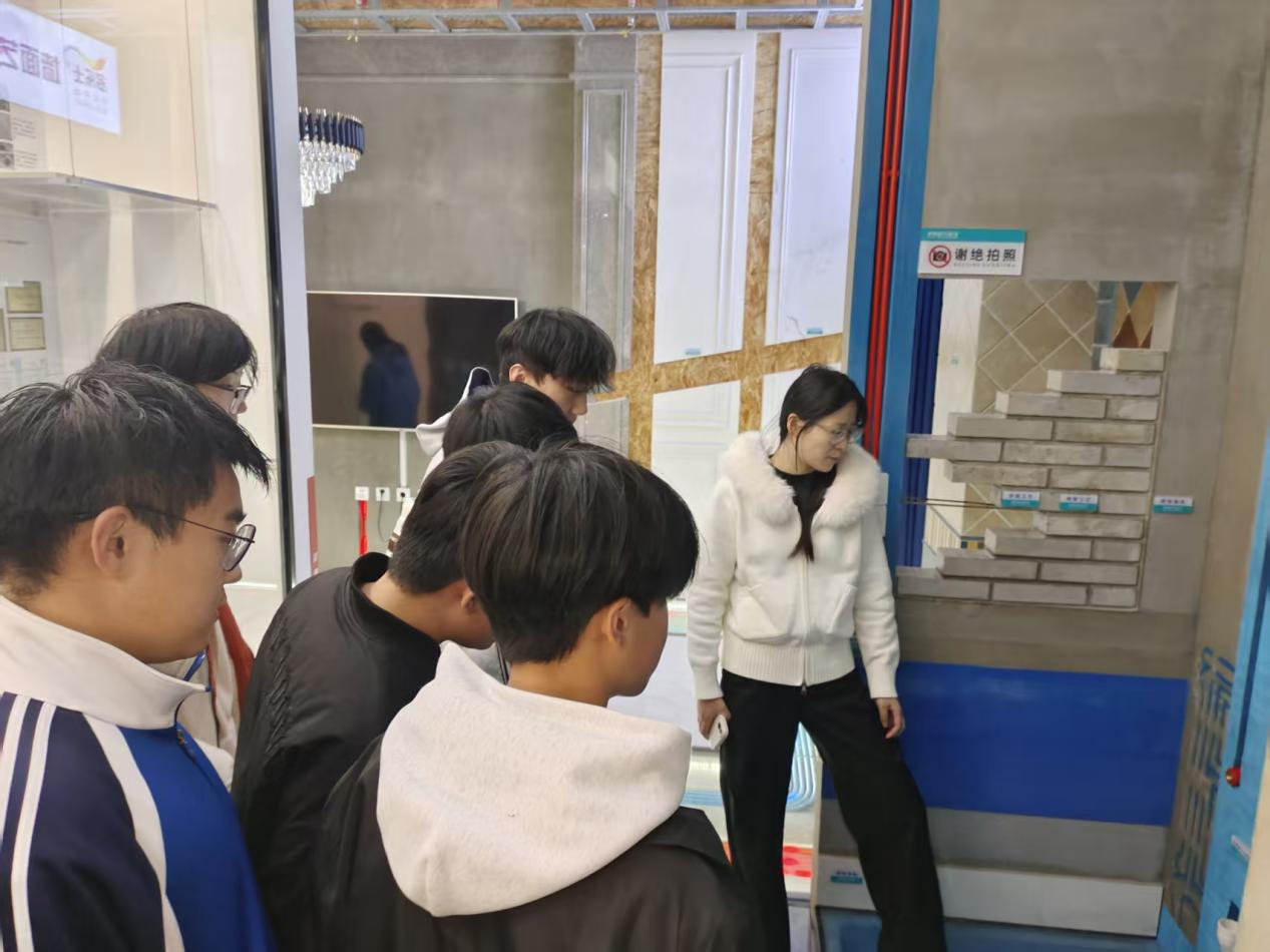 實習圍繞施工工藝、裝飾材料與軟裝定制等核心環(huán)節(jié)展開。在工藝工法展示區(qū),企業(yè)專家為學生們現(xiàn)場講解了水電、防水等關鍵工序的規(guī)范標準,讓抽象的課本知識化為直觀的“實體模型”。同學們紛紛表示,這種零距離的接觸讓他們對“規(guī)范施工”有了前所未有的深刻理解。