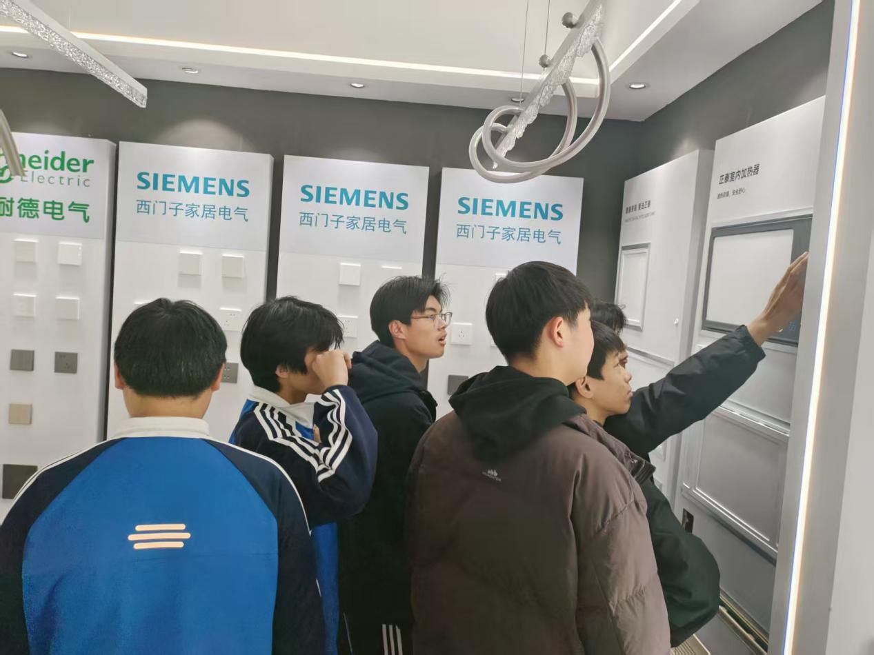 在材料展廳與實體樣板間,學生們觀摩了各類主流環(huán)保建材與智能化家居產(chǎn)品,并通過不同風格的樣板間,直觀感受了設計理念從圖紙到現(xiàn)實的完美落地。在軟裝定制區(qū)域,企業(yè)負責人闡述了如何通過家具、布藝、燈飾等元素的統(tǒng)籌搭配,為硬裝空間畫上“點睛之筆”,讓學生認識到裝飾不僅是技術,更是美學與生活方式的營造。