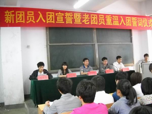 ??????? 今年是建黨90周年,在此之際,校團委于5月25日下午5:20在教學樓108舉行了新團員入團宣誓暨老團員重溫入團誓詞?儀式。王彬副校長參加了此次儀式。