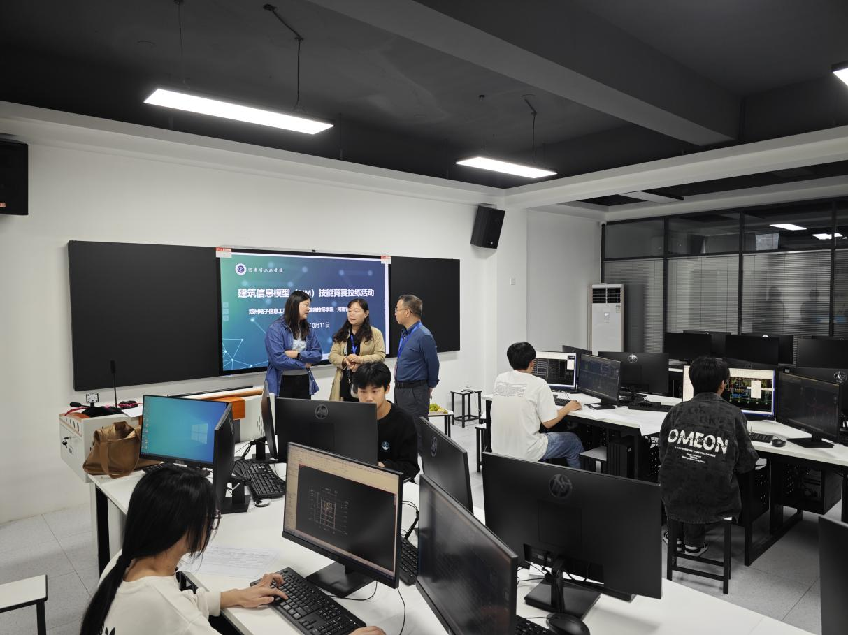 2024年10月11日14:30,建筑信息模型( BIM )技能競(jìng)賽三校拉練活動(dòng)在我校BIM實(shí)訓(xùn)中心舉行。由鄭州市電子信息工程學(xué)校、鄭州鐵路技師學(xué)院和我校的備賽師生匯聚一堂,共同見(jiàn)證了這場(chǎng)技能與智慧的精彩碰撞。本次拉練活動(dòng)得到了學(xué)校的大力支持,賽場(chǎng)布置專(zhuān)業(yè)而規(guī)范,為選手們營(yíng)造出了良好的競(jìng)賽氛圍。本次拉練活動(dòng)共有8名學(xué)生參加,同時(shí)邀請(qǐng)了鄭州財(cái)經(jīng)學(xué)院國(guó)賽輔導(dǎo)老師韓忠婭和品茗科技黃敏浩經(jīng)理作為評(píng)委專(zhuān)家。
