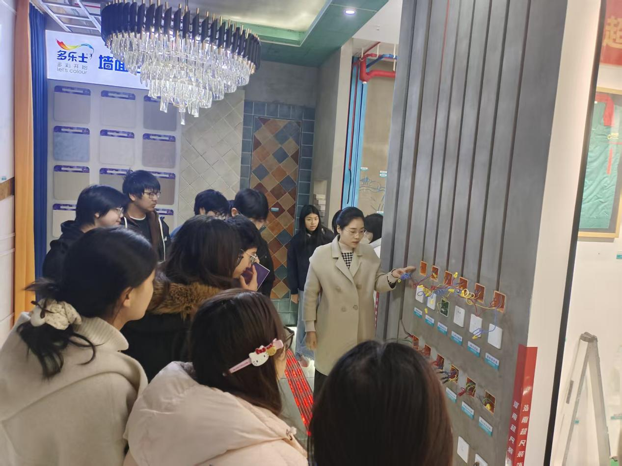 在材料展廳與實體樣板間,學生們觀摩了各類主流環(huán)保建材與智能化家居產(chǎn)品,并通過不同風格的樣板間,直觀感受了設計理念從圖紙到現(xiàn)實的完美落地。在軟裝定制區(qū)域,企業(yè)負責人闡述了如何通過家具、布藝、燈飾等元素的統(tǒng)籌搭配,為硬裝空間畫上“點睛之筆”,讓學生認識到裝飾不僅是技術,更是美學與生活方式的營造。